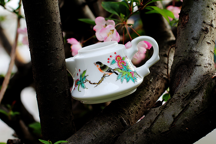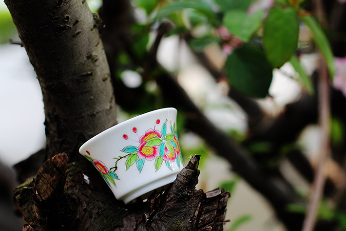 手繪功夫茶具(竹質(zhì)茶海)水點(diǎn)桃花
