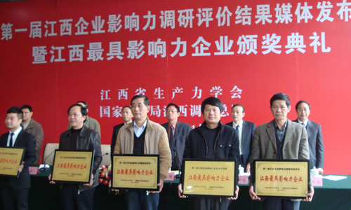 為了挖掘全省各行業(yè)在建設(shè)富裕和諧秀美江西中涌現(xiàn)出來(lái)的標(biāo)桿性企業(yè),打造行業(yè)形象典范,江西省生產(chǎn)力學(xué)會(huì)、國(guó)家統(tǒng)計(jì)局江西調(diào)查總隊(duì)聯(lián)合開展了第一屆江西企業(yè)影響力調(diào)研評(píng)價(jià)活動(dòng)。并于2012年3月21日在江西南昌舉行了調(diào)研評(píng)價(jià)結(jié)果媒體發(fā)布會(huì)暨江西最具影響力企業(yè)頒獎(jiǎng)典禮。