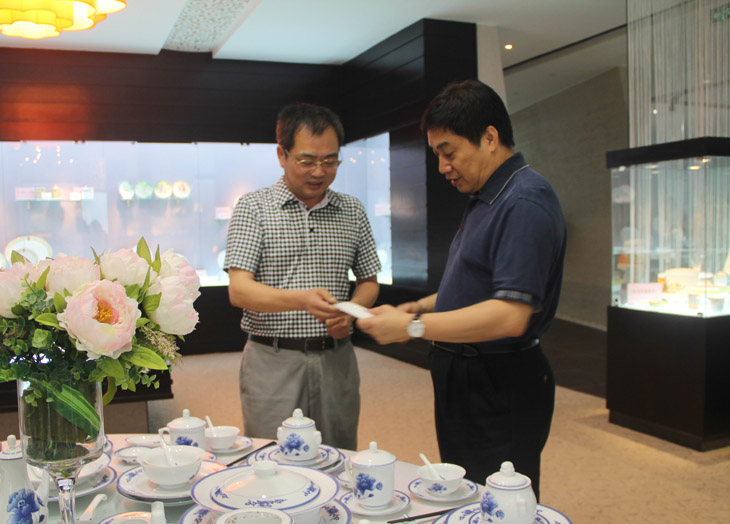 國(guó)家旅游局副局長(zhǎng)祝善忠到我公司視察指導(dǎo)工作,公司總經(jīng)理夏躍中先生為祝善忠局長(zhǎng)解說(shuō)了我公司的產(chǎn)品。