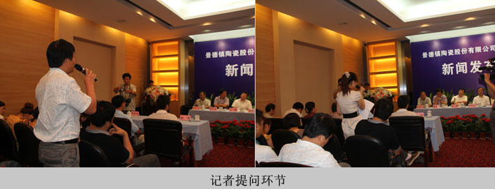 新聞發(fā)布會(huì)上,市人大副主任、市委秘書長(zhǎng)余振泰,市政府副秘書長(zhǎng)、市國資委黨委主任劉朝陽,市旅游局局長(zhǎng)饒寧生,陶瓷股份公司黨委書記、董事長(zhǎng)王耀、黨委副書記、總經(jīng)理夏躍中等相關(guān)人員就陶瓷股份公司近年來的發(fā)展、公司工業(yè)旅游發(fā)展、實(shí)施品牌戰(zhàn)略等方面回答了與會(huì)新聞媒體記者的提問。