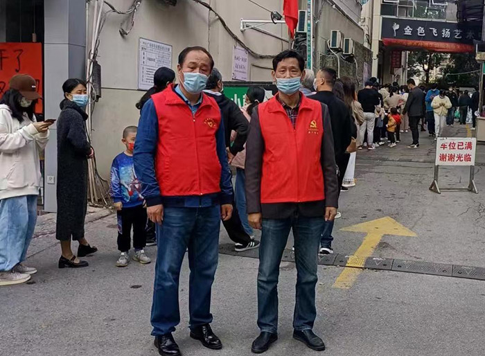 副書記陳華、黨員劉志華居住在高風(fēng)險(xiǎn)小區(qū)內(nèi),但是他們無懼風(fēng)險(xiǎn),主動(dòng)請纓,負(fù)責(zé)值守被封控的樓棟,確保疫情阻斷在網(wǎng)格內(nèi)。