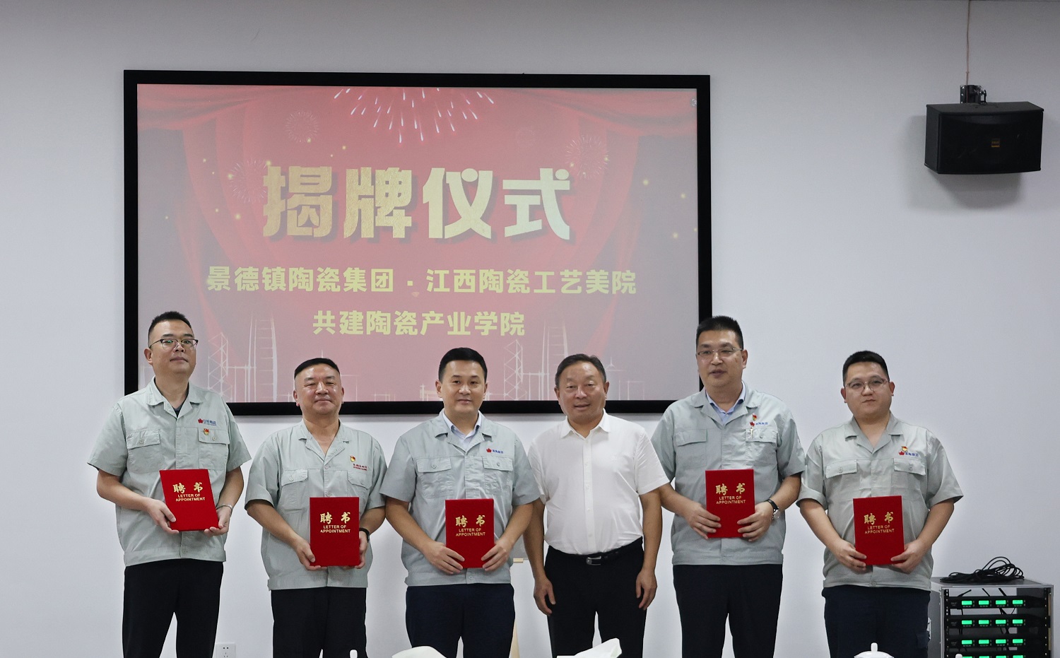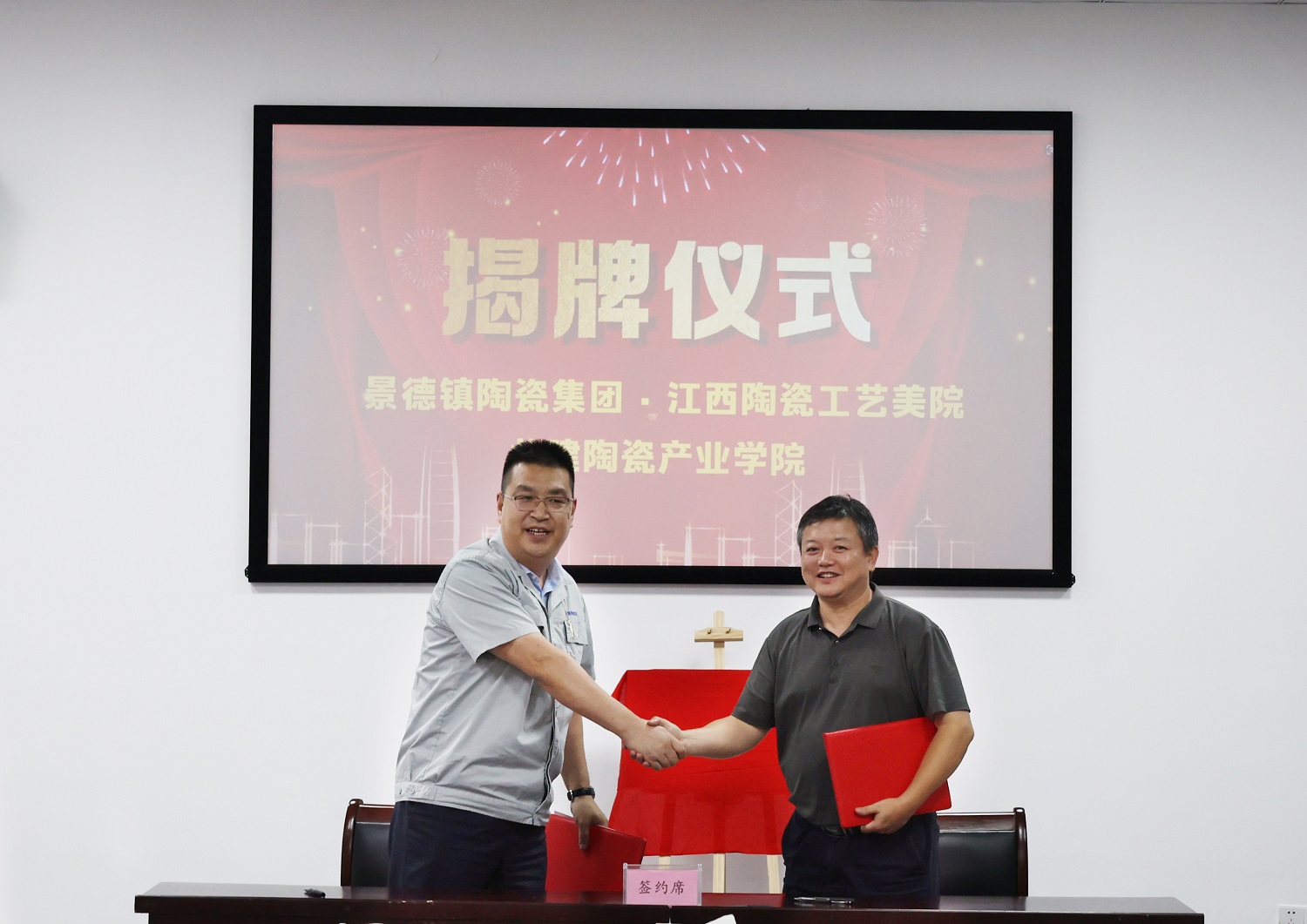 為深入貫徹落實(shí)國(guó)家推進(jìn)“一體兩翼”重大戰(zhàn)略部署,更好地服務(wù)地方陶瓷產(chǎn)業(yè)發(fā)展,助推陶瓷職業(yè)教育發(fā)展。8月16日下午,在景德鎮(zhèn)陶瓷集團(tuán)行政樓一樓會(huì)議室隆重舉行江西陶瓷工藝美術(shù)職業(yè)技術(shù)學(xué)院與景德鎮(zhèn)陶瓷集團(tuán)共建陶瓷產(chǎn)業(yè)學(xué)院揭牌儀式。江西陶瓷工藝美術(shù)職業(yè)技術(shù)學(xué)院黨委書(shū)記方文龍,黨委委員、副院長(zhǎng)朱輝球,景德鎮(zhèn)陶瓷集團(tuán)黨委書(shū)記、董事長(zhǎng)鄧景揚(yáng),黨委副書(shū)記、總經(jīng)理邢浩,黨委委員、工會(huì)主席鄧必春,黨委委員胡軼,黨委委員、副總經(jīng)理王小勤出席揭牌儀式。學(xué)院及企業(yè)相關(guān)部門(mén)負(fù)責(zé)人參加。